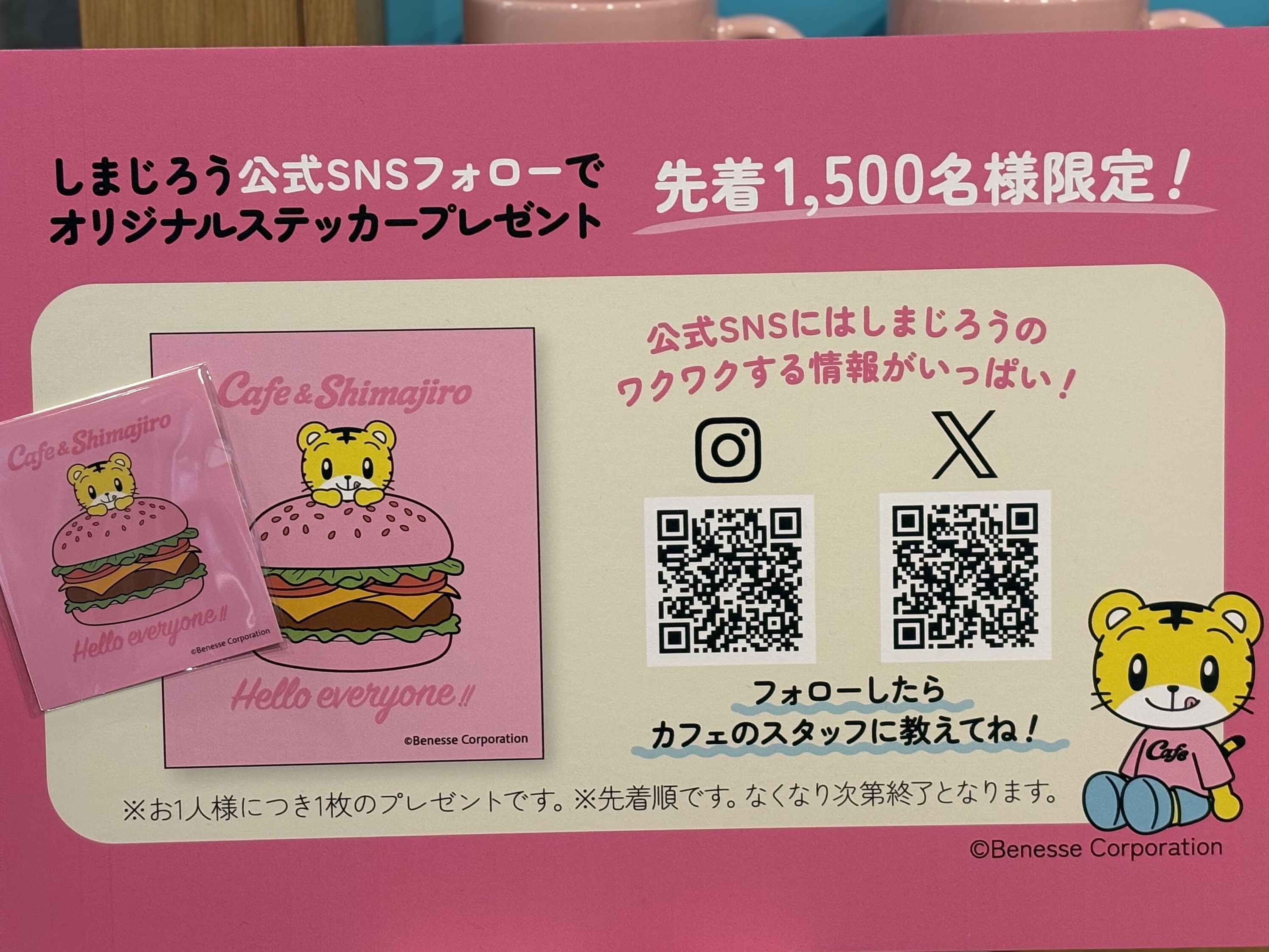 また、来場者限定の記念キャンペーンとして、しまじろう公式SNSをフォローすると、先着1,500名に「オリジナルステッカー」をプレゼントする企画も実施していますよ!(無くなり次第終了)