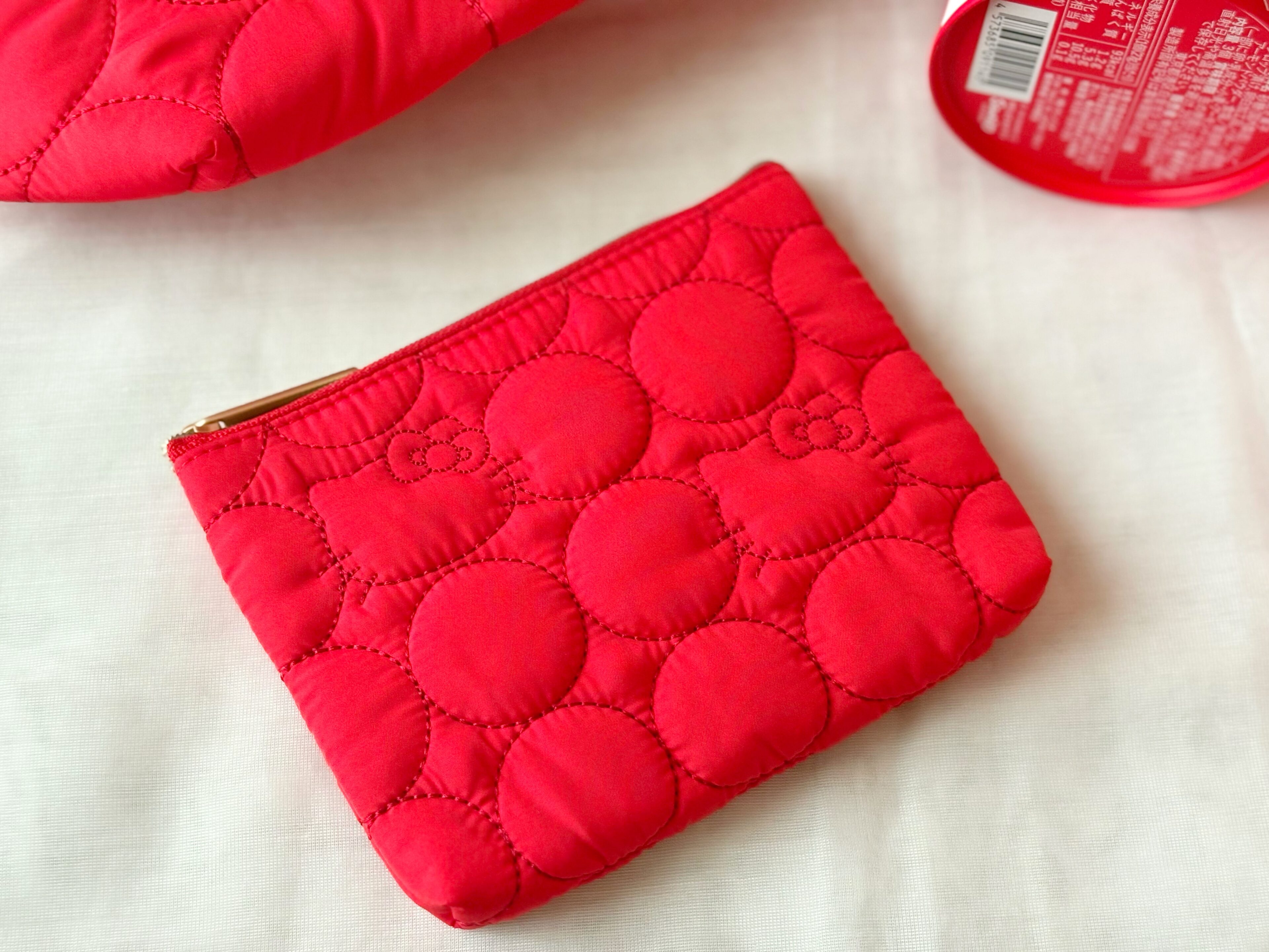 ポーチのハローキティの刺繍をあしらったデザインは、大人の装いにもなじむ存在感。