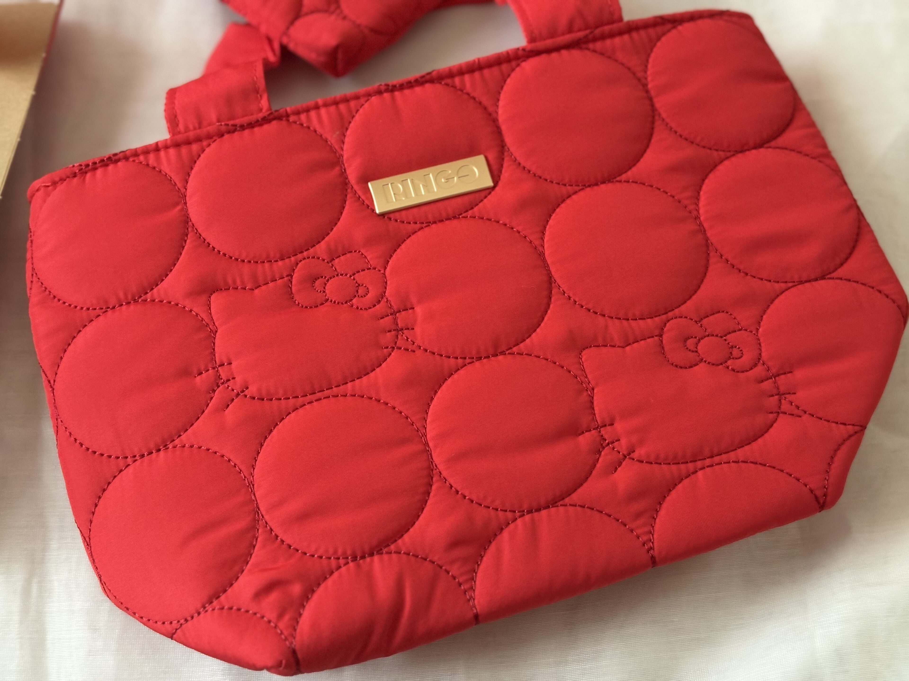 クーラーバッグは、RINGOを象徴する赤色のパターンに、ハローキティを取り入れた限定デザイン。