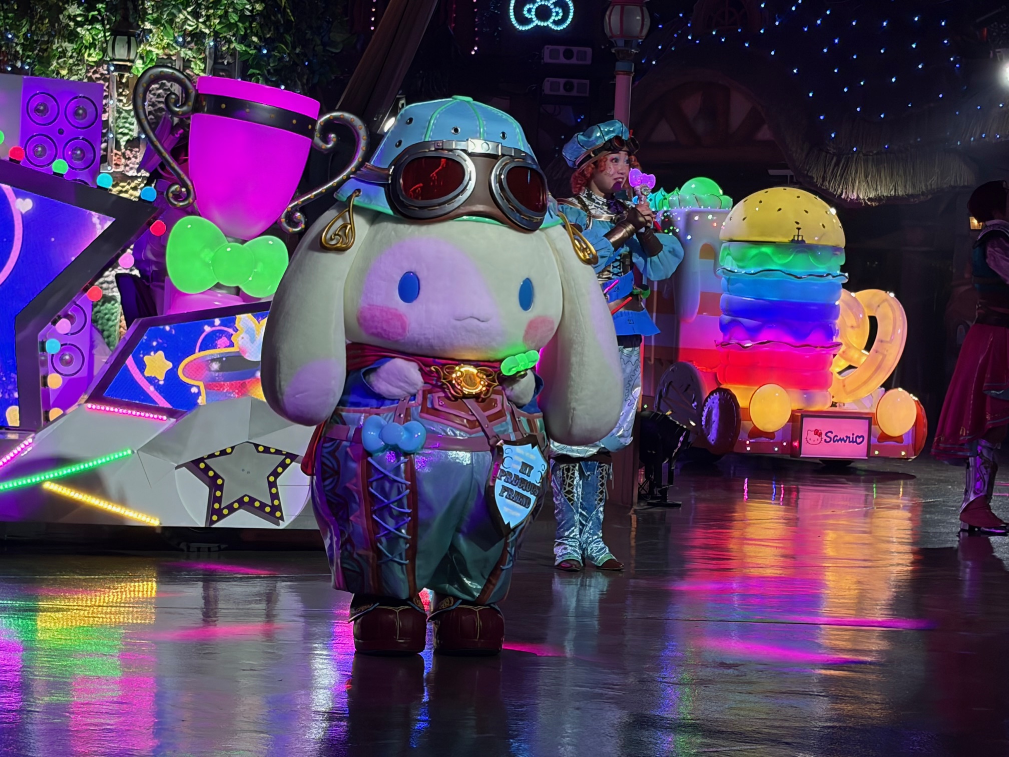 ふわふわ笑顔のシナモロールが、一生懸命ワンダーリボンライトを振って、パレードを盛りあげます。頑張る姿が癒し。