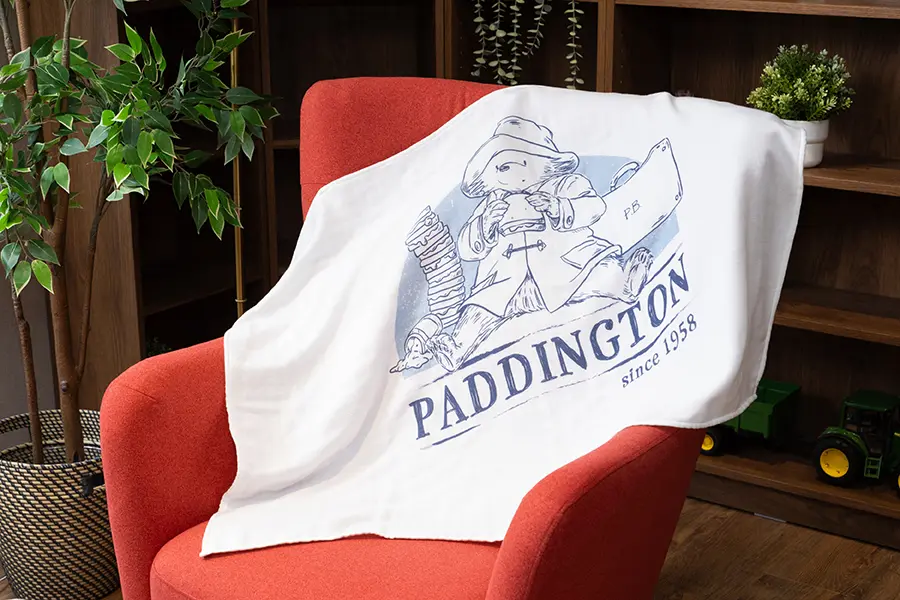 トレードマークの帽子とダッフルコートを身に付けた姿が愛らしい、クマのパディントン™。みんなに愛されているパディントンとコラボして、オリジナルグッズを作りました。&あんふぁんらしいやさしい使い心地を意識したガーゼケットを紹介します